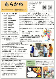 お知らせ 新川自治会令和7年度総会2025年5月22日 マリ江の恩返し公演2023年3月8日 学習支援事業案内2022年8月8日 お知らせ一覧 → 施設案内 新川だより あらかわだより11月号2025年11月18日 令和7年7月号2025年7月1日 令和7年5月号2025年5月27日 過去記事一覧 → 新川コミュニティーセンターについて 新川コミュニティーセンターは、沖縄県の南風原町字新川にある多目的施設です。様々な施設やイベント、講座や教室などもりだくさん!お気軽にご来館ください。